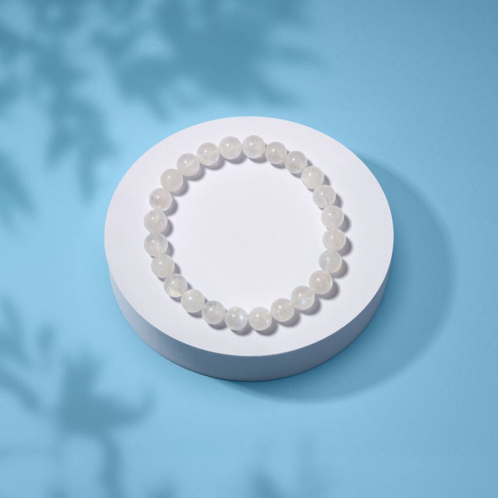 Mėnulio akmens apyrankė – tai akmuo, siejamas su ramybe, emocijų balansu ir moteriškos energijos stiprinimu. Jis ypatingai tinka tiems, kurie ieško vidinės pusiausvyros, nori suaktyvinti intuiciją ir stiprinti ryšį su savo vidiniu pasauliu. Mėnulio akmuo harmonizuoja Kryžkaulio ir Trečiosios akies čakras.